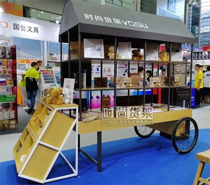時(shí)尚貨架將展位打造成一間小小的精品書店,無論是書籍還是創(chuàng)意文具,都可以用這些貨架陳列,并通過貨架設(shè)計(jì)中的細(xì)節(jié),將商品更美觀的展示呈現(xiàn)給參展觀眾。