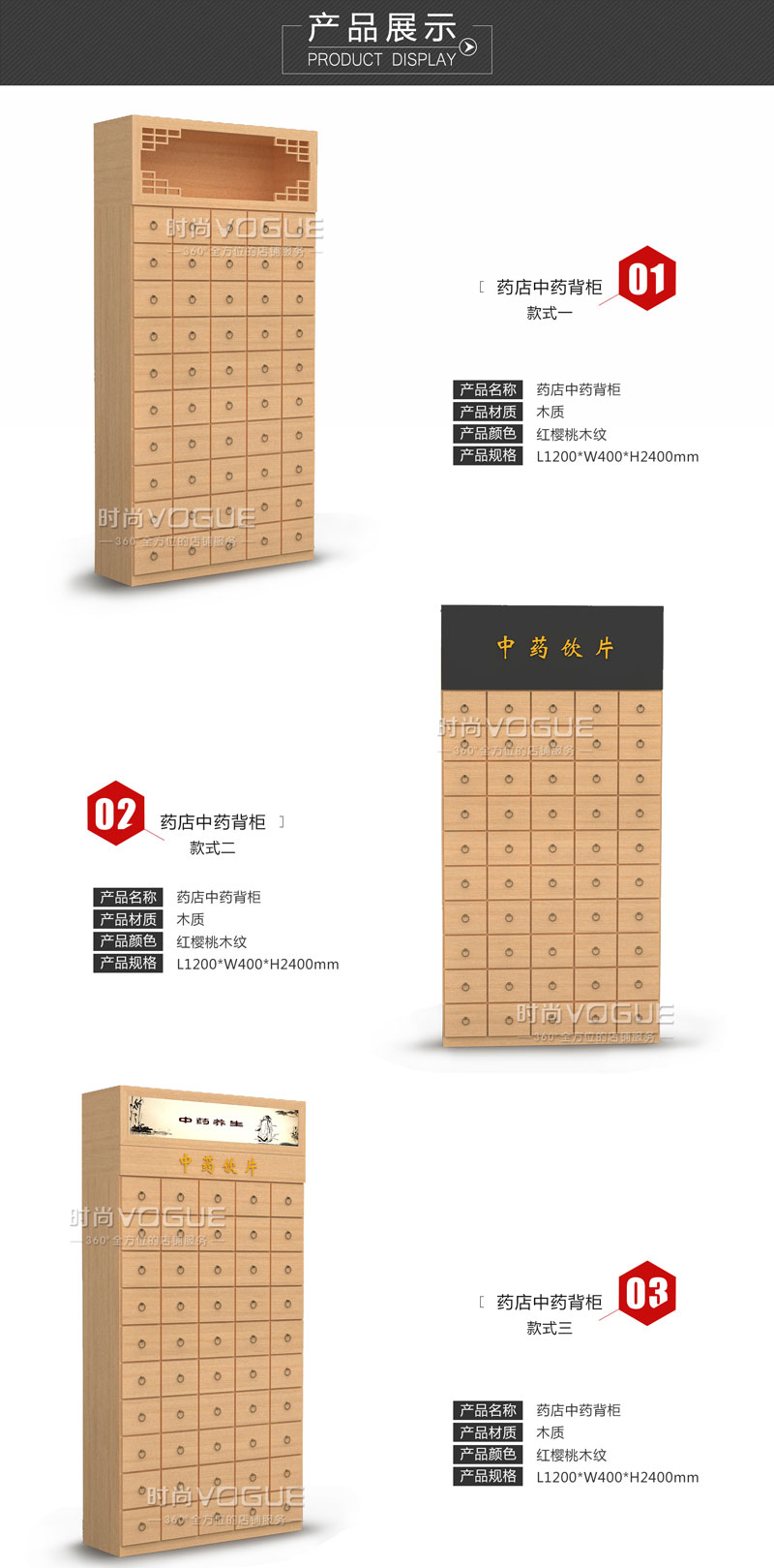 【產(chǎn)品名稱】紅櫻桃木紋中藥柜/藥店木質(zhì)中藥背柜/高檔中藥柜