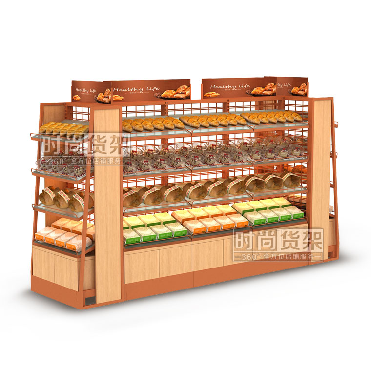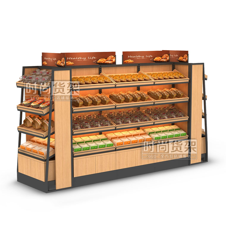 便利店貨架_面包區(qū) (雙面木板帶地柜)