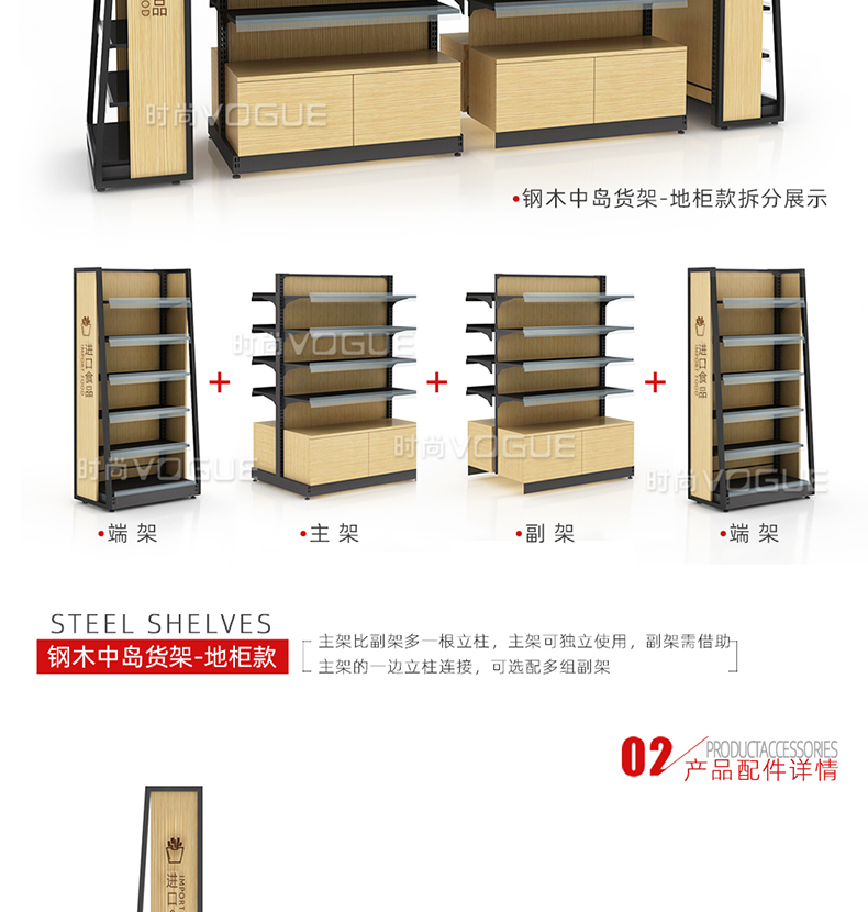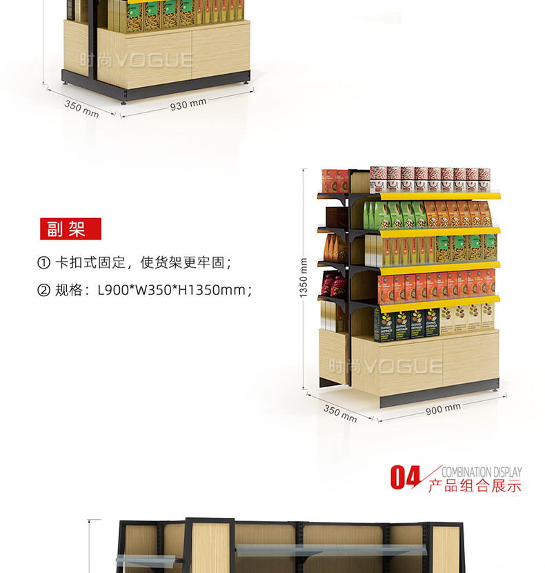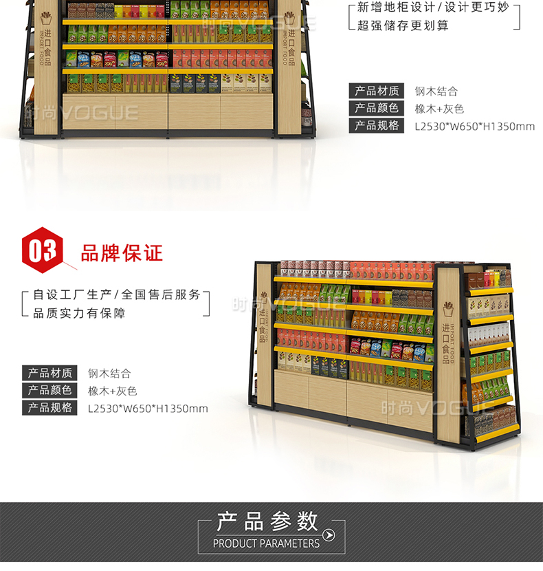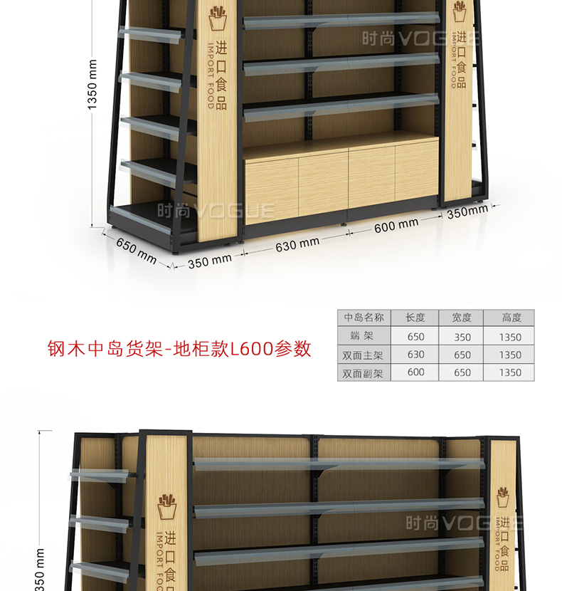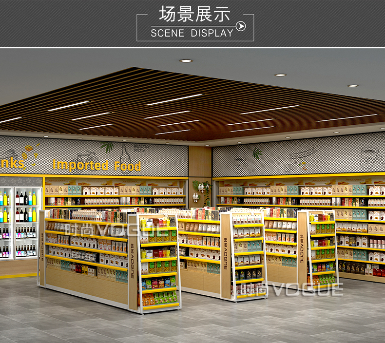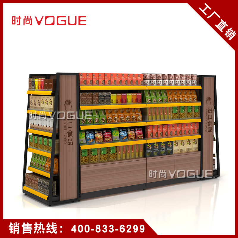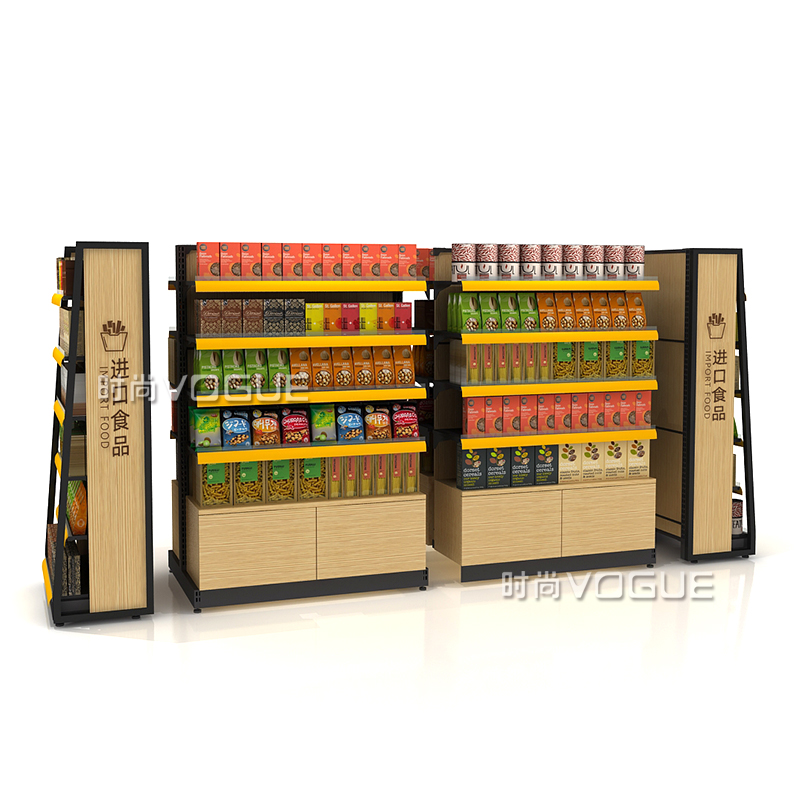 • 產(chǎn)品描述:本款木背板食品貨架是便利店貨架廠家最新推出的一款便利店貨架,底部地柜設計增加儲物功能。