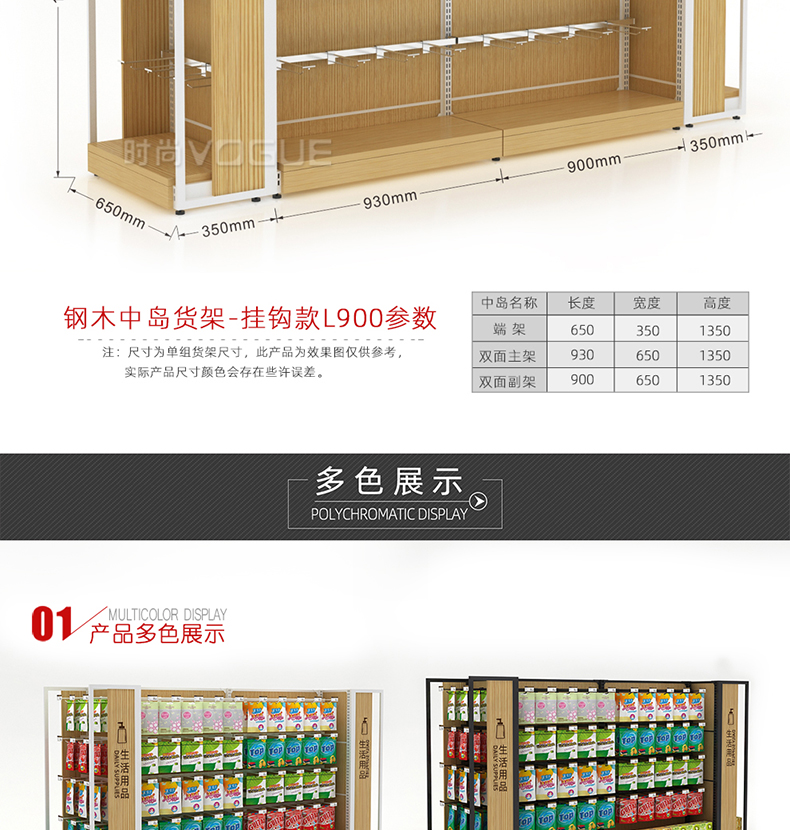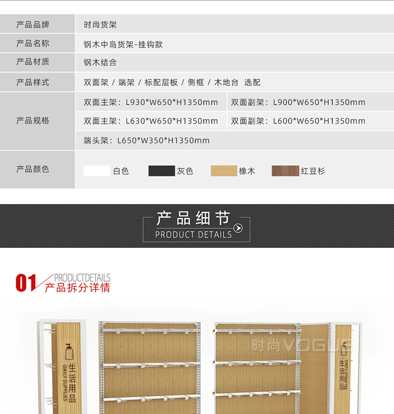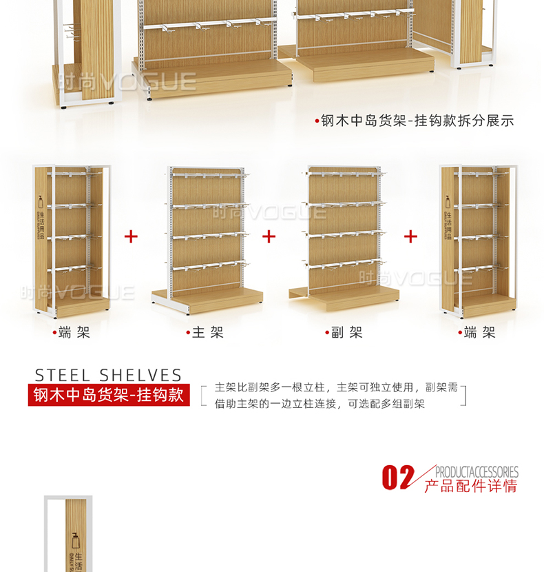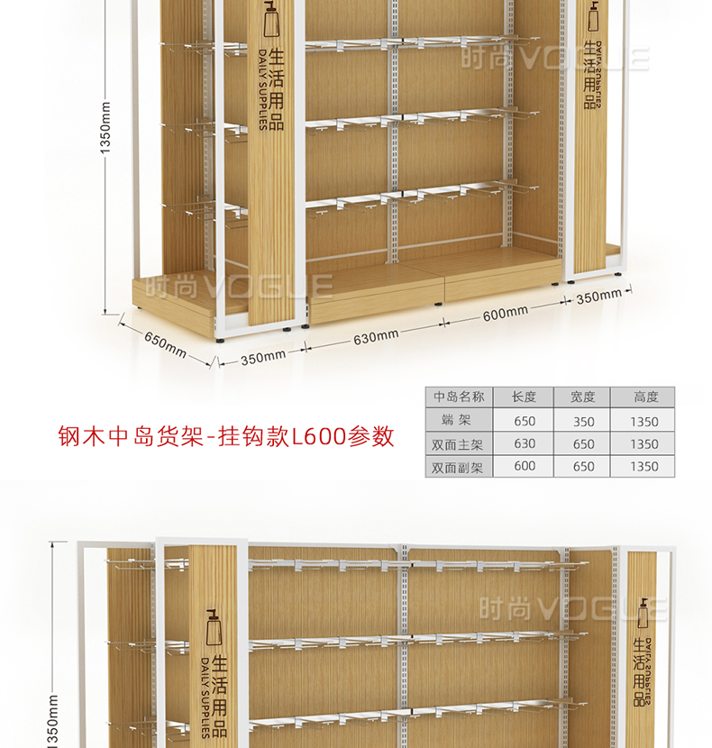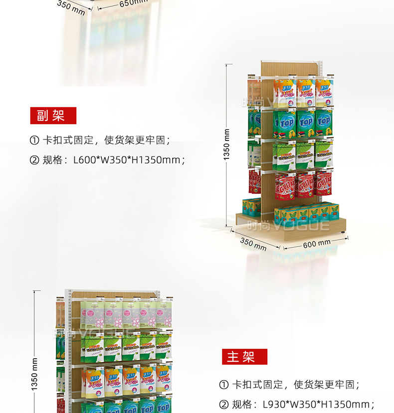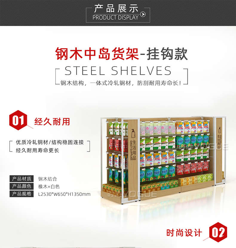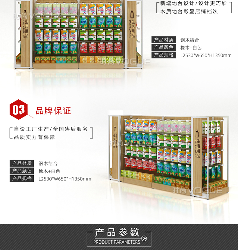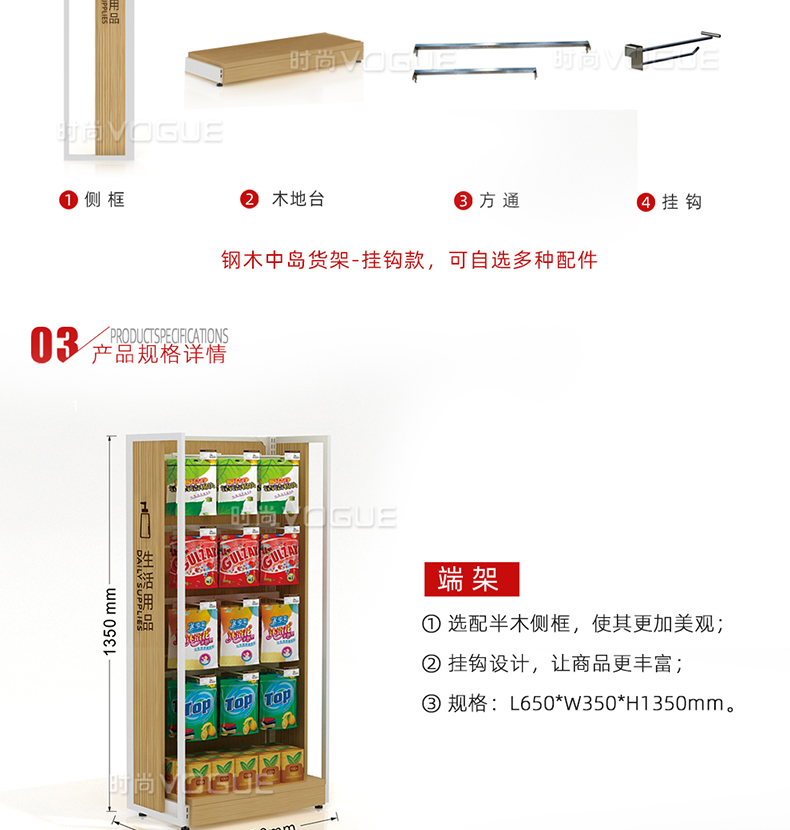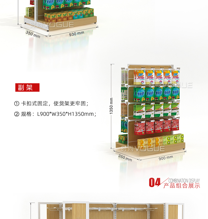 - 產(chǎn)品描述:本款木背板食品貨架是便利店貨架廠家最新推出的一款便利店貨架,掛鉤和層板可以互換,底部增加木地臺(tái),更加美觀大氣。