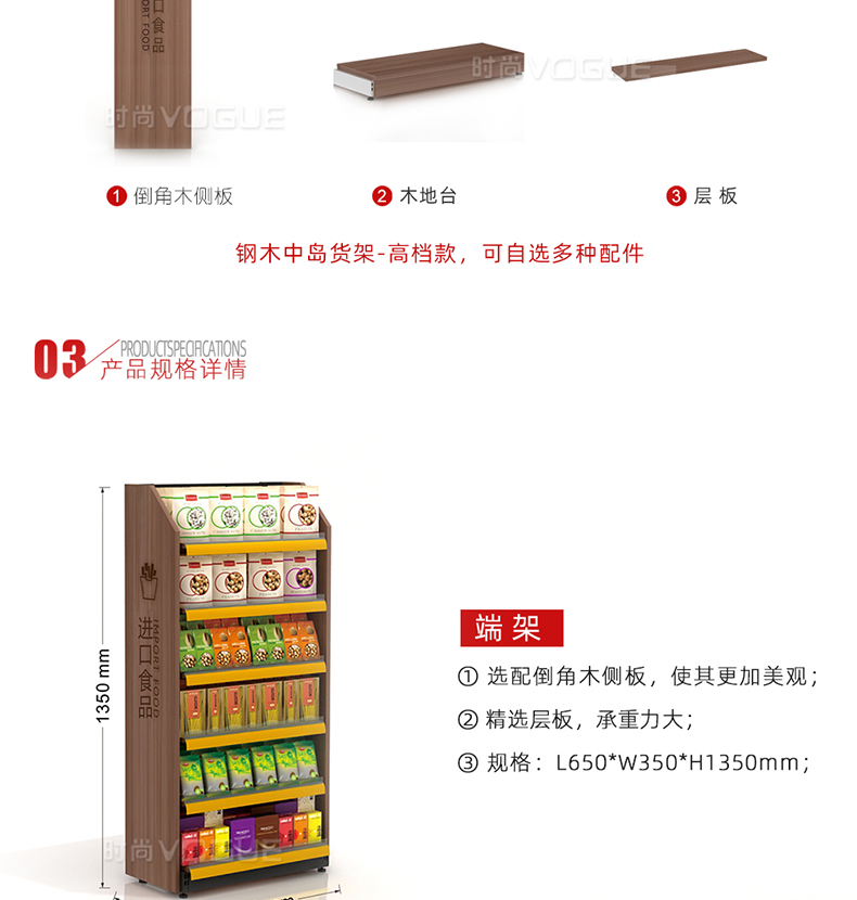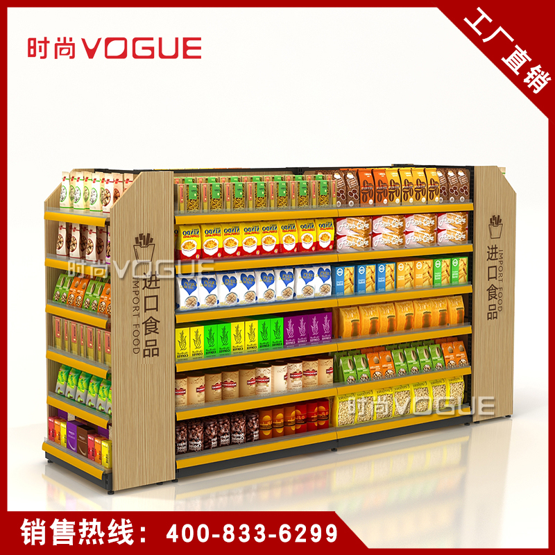 - 產(chǎn)品描述:便利店雙面零食貨架由深圳貨架廠時(shí)尚貨架打造,應(yīng)用于便利店內(nèi)的食品區(qū)域。