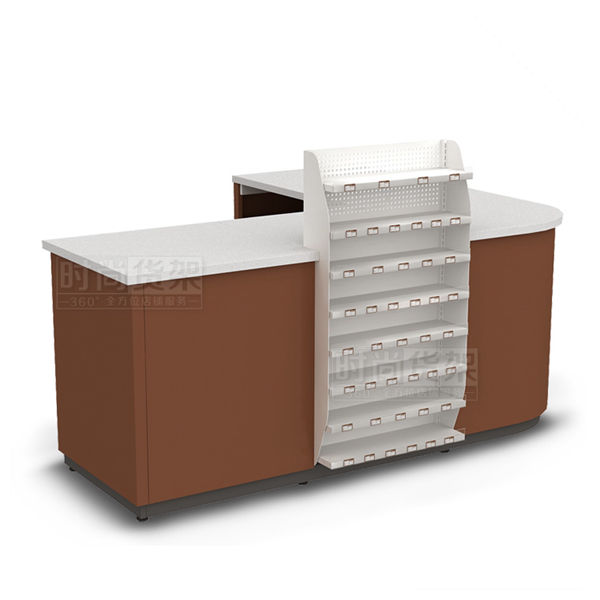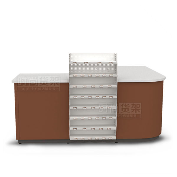 【描述】此款便利店收銀臺是時尚貨架2017年新推出的一款組合式收銀柜臺,采用弧形轉(zhuǎn)角設(shè)計,有白色、灰色、咖啡色三種顏色可以選擇。收銀臺采用優(yōu)質(zhì)三胺板,堅固耐用。整體造型簡潔實用,還可根據(jù)需求配置多個小前架,方便收銀區(qū)放置更多小商品。是一款高性價比的便利店收銀臺。