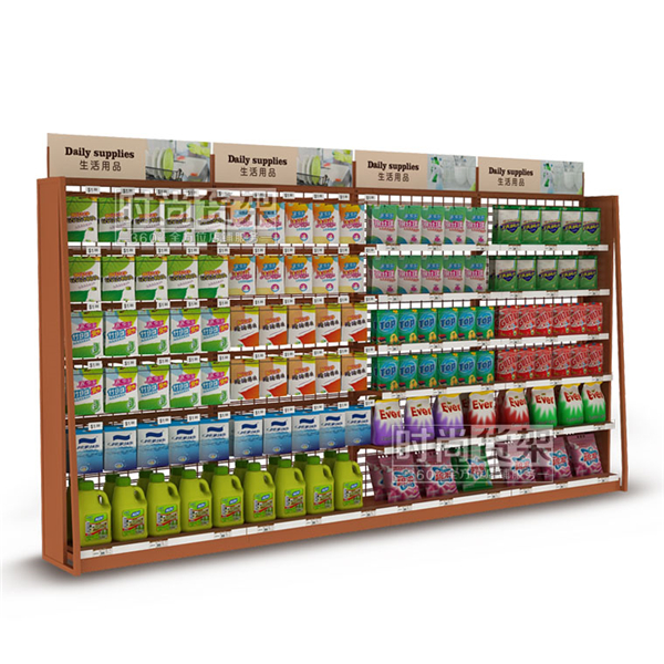 超市生活用品貨架是一款適用于超市生活用品區(qū)的單面靠墻貨架,想要了其他超市貨架,請(qǐng)咨詢時(shí)尚貨架客服。